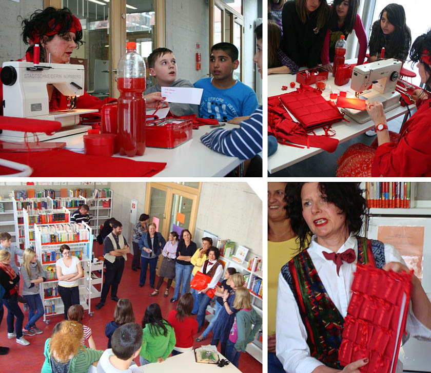 im Foyer der AKR nähte Wilhelmine das Wunschbuch fertig –